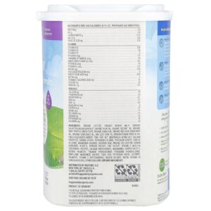 Lactose orgânica, leite orgânico desnatado, galacto-oligossacarídeos orgânicos†, óleo de palma orgânica, óleo de coco orgânico, concentrado de proteína whey orgânico, óleo de canola orgânica, óleo de girassol orgânico com alto teor oleico, óleo de girassol orgânico, e menos de 1%: Bifidobacterium breve m-16v, fruto-oligossacarídeos†, óleo de atum‡, óleo de Mortierella alpina§, fosfato de cálcio, citrato de sódio, citrato de potássio, cloreto de potássio, cloreto de colina, cloreto de magnésio, sulfato ferroso, ácido ascórbico, lecitina de soja orgânica, hidróxido de sódio, inositol, sulfato de zinco, vitamina E (acetato de racealfatocoferol), pantotenato de cálcio, nicotinamida, sulfato de cobre, palmitato de retinol, cloridrato de tiamina, cloridrato de piridoxina, riboflavina, iodeto de potássio, sulfato de manganês, ácido fólico, palmitato de ascorbila, selenito de sódio, vitamina K (fitomenadiona), biotina, vitamina D3 (colecalciferol), cianocobalamina.