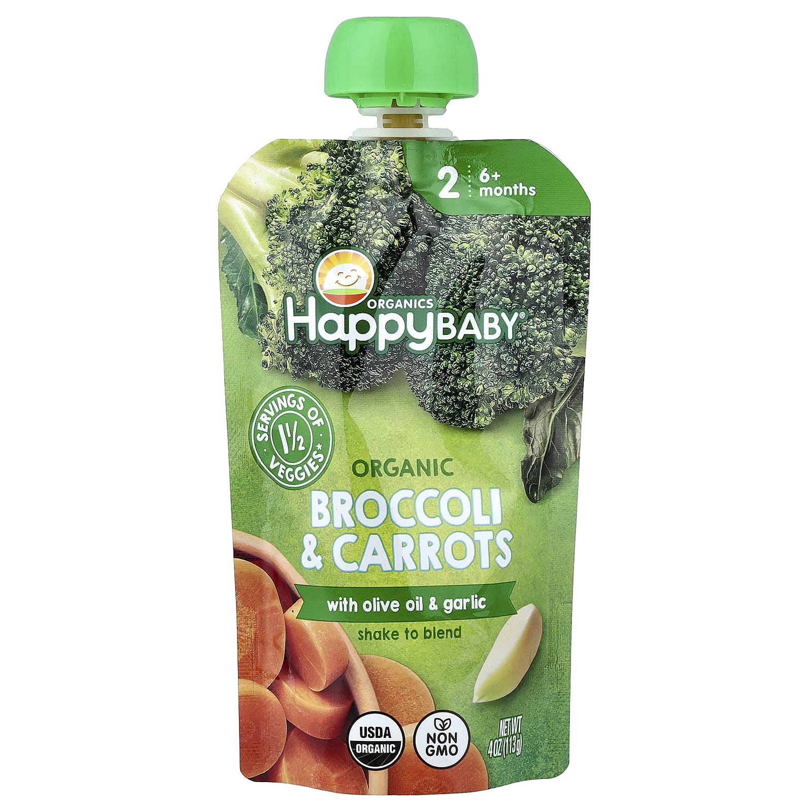 Happy Family Organics Happy Baby® Brócolis e Cenouras Orgânicos com Óleo de Oliva + Alho A Partir de 6 Meses 113 g (4 oz) – Happy Family Organics Bebês e Crianças Alimentação Saquinhos, Purês e Refeições.