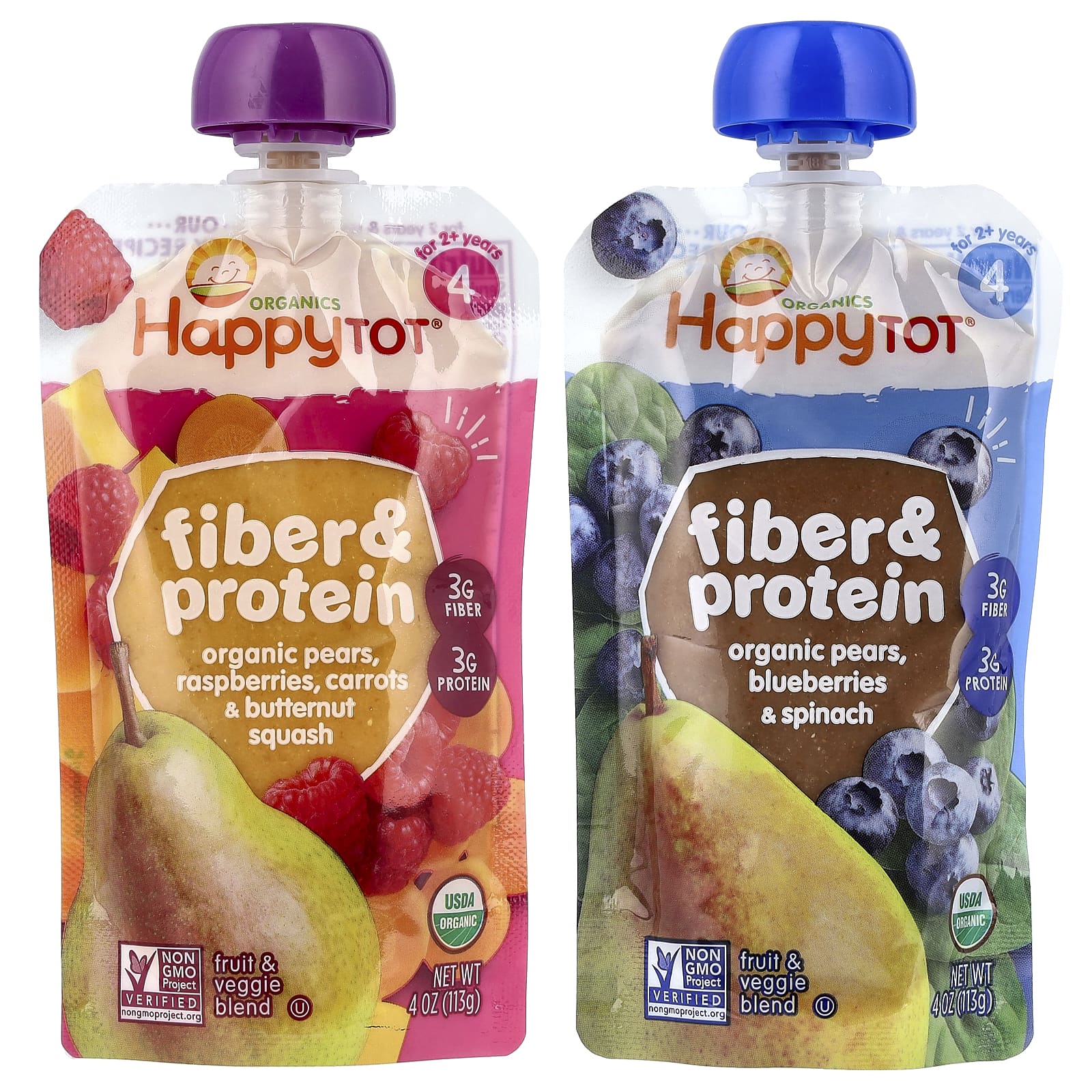 Happy Family Organics Happy Tot® Fibra e Proteína Para Maiores de 2 Anos Embalagem Sortida 8 Sachês 113 g (4 oz) Cada – Happy Family Organics Bebês e Crianças Alimentação Saquinhos, Purês e Refeições.