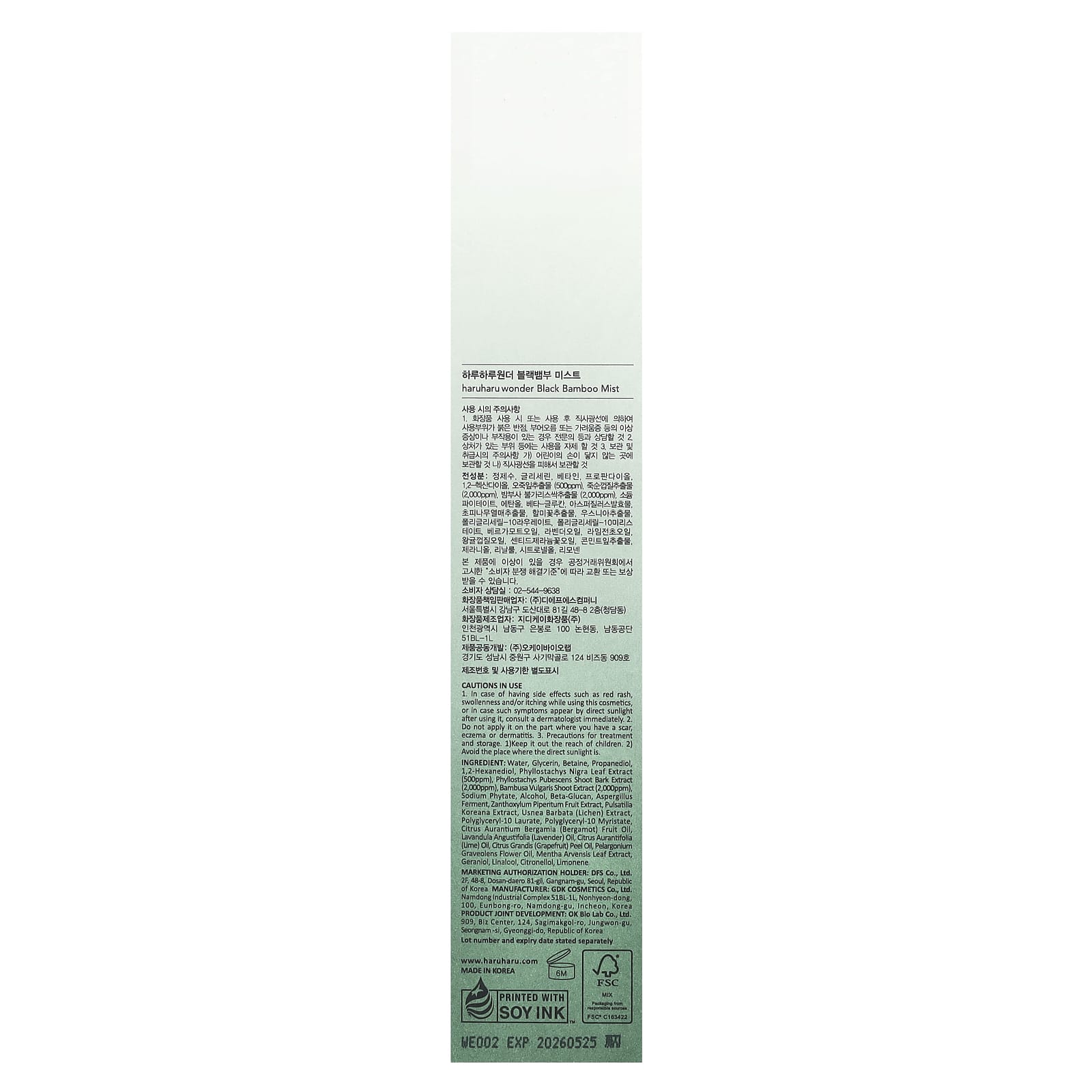 Haruharu Wonder Black Bamboo Mist é uma mistura pura da casca do broto de bambu fermentada naturalmente e de extratos da folha de bambu preto. Ele fornece um reforço de nutrientes repletos de antioxidantes e amplifica a proteção para seus cuidados faciais diários