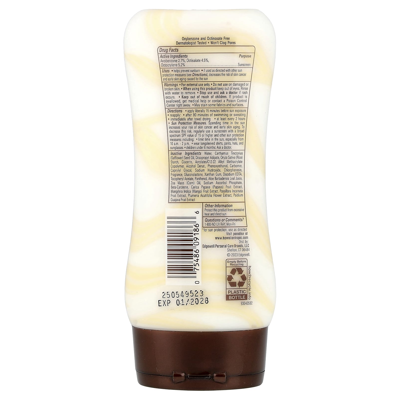 | Ingredientes Inativos: Água, óleo da semente de Carthamus tinctorius (cártamo), diisopropil adipato, amido de Oryza sativa (arroz), glicerina, acrylates/c12-22 alkyl metacrylate copolymer, álcool desnat., fenoxietanol, carbômero, caprylyl glycol, hidróxido de sódio, clorfenesina, fragrância, gluconolactone , goma xantana, edetato dissódico, acetato de tocoferol, pantenol, suco da folha de Aloe barbadensis, óleo de Zea mays (milho), sodium ascorbyl phosphate, betacaroteno, extrato da fruta de Carica papaya (mamão), extrato da fruta de Mangifera indica (manga), Passiflora incarnata extrato da fruta, extrato da flor de Plumeria acutifolia, extrato da fruta de Psidium guajava. | |
