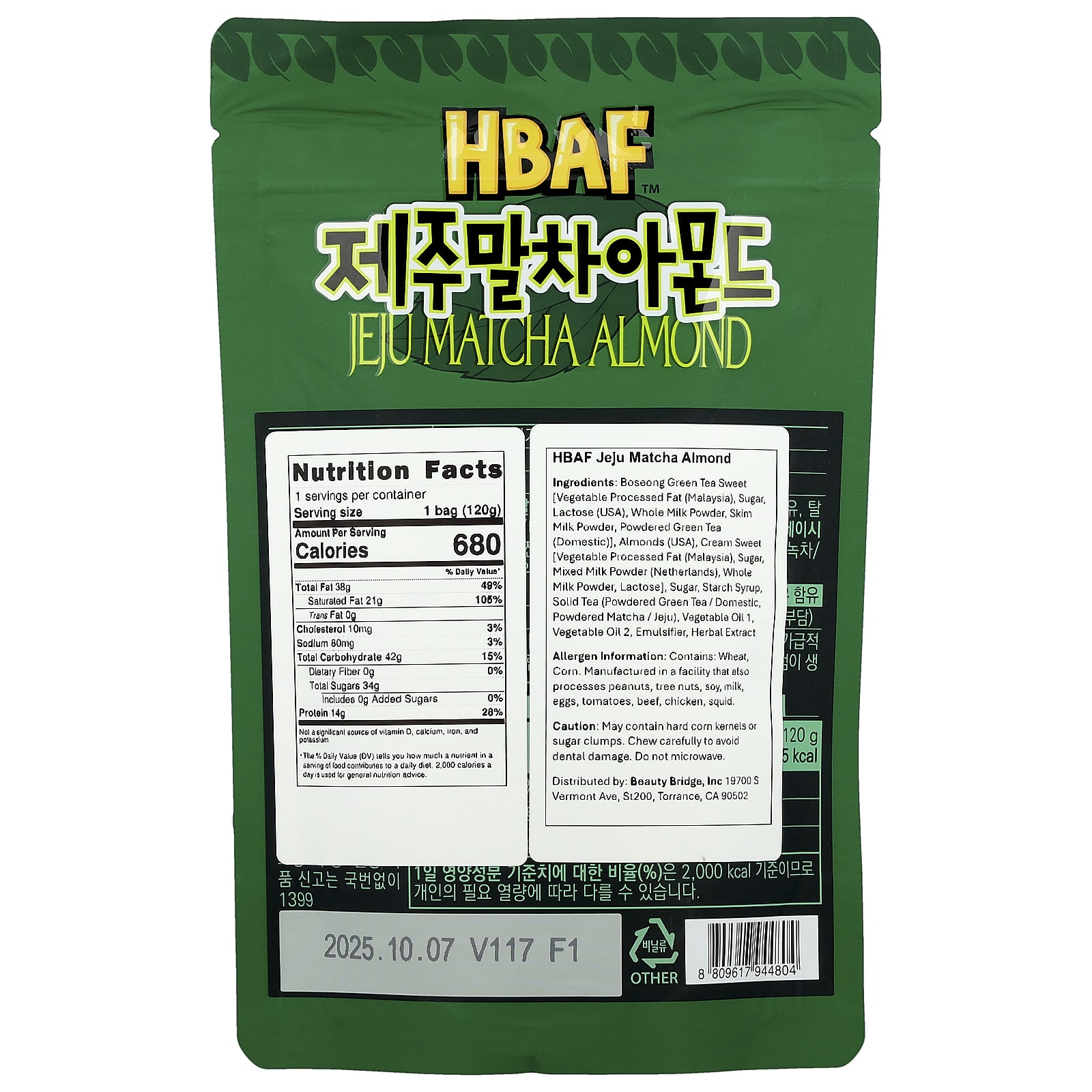 HBAF Matcha Jeju e Amêndoa 120 g – HBAF Alimentos Petiscos e lanches Castanhas e sementes Amêndoas.