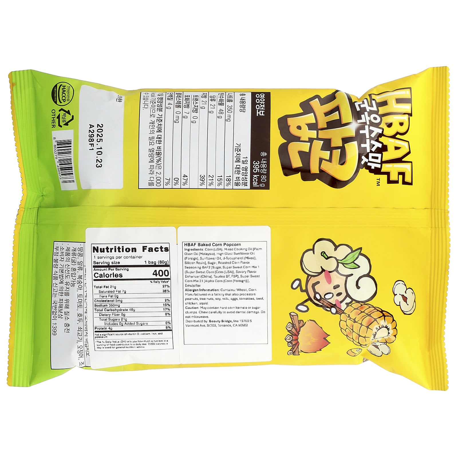 Milho (EUA), óleo de cozinha misto [óleo de oleína de palma (Malásia), óleo de girassol alto oleico (estrangeiro), óleo de girassol, dextroalfatocoferol (misto), resina de silício], açúcar, sabor de milho torrado tempero-baf 2 [açúcar, mistura de milho superdoce 1 {milho superdoce (milho (EUA)), intensificador de sabor saboroso (Chinesa), taurina bf, fsp}, mistura de milho superdoce 21 [milho alfa (milho (estrangeiro))], emulsificante.