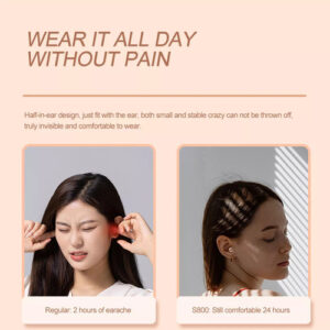 Confortável de usar, não cai, menor e mais invisível, pode esconder a forma do corpo pequeno, não pode esconder a boa voz. O corpo leve de 3,5 g não é um fardo para os ouvidos. Uma orelha pesa apenas 3,5 g e é usada como se não fosse. As orelhas são confortáveis, tanto para a