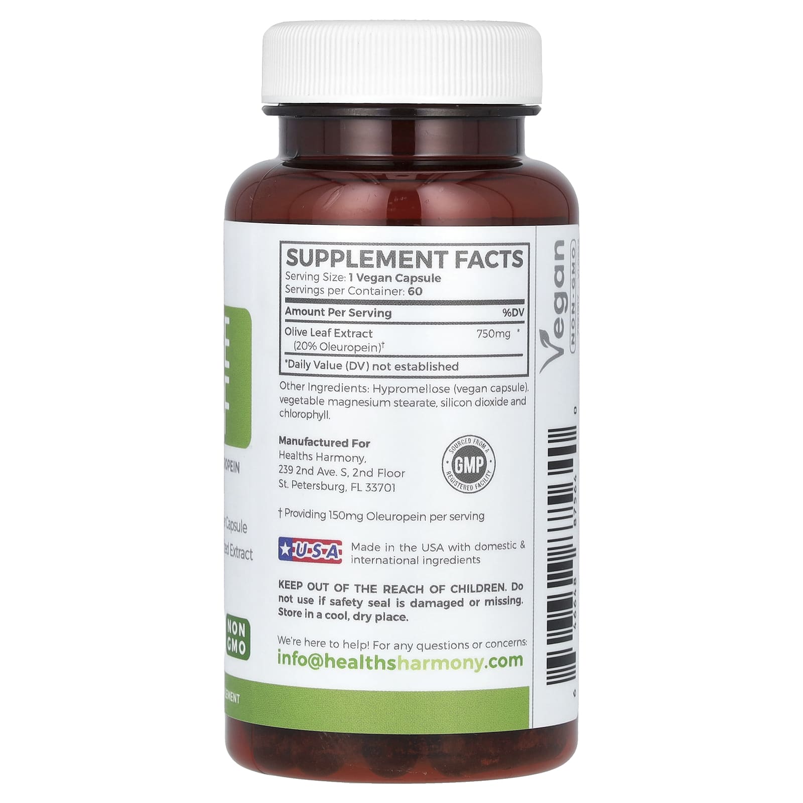 Healths Harmony Folha de Oliveira 750 mg 60 Cápsulas – Healths Harmony Suplementos Ervas Folha de Oliva.