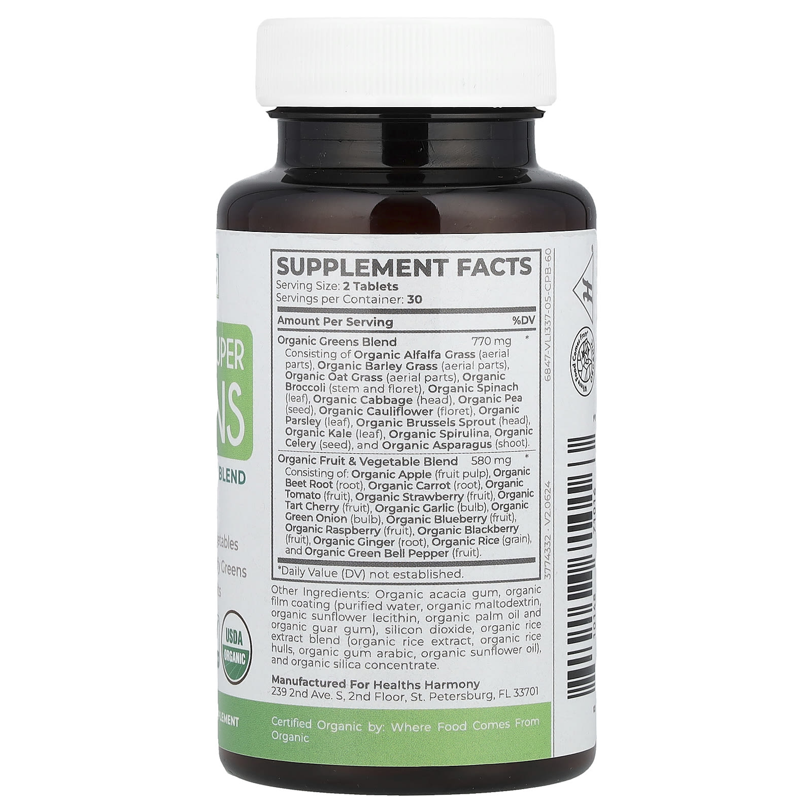 Healths Harmony Superverdes Orgânicos 60 Comprimidos – Healths Harmony Suplementos Superalimentos Superalimentos Verdes Misturas de Verduras.