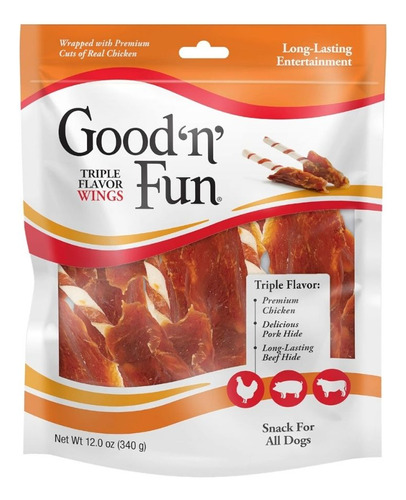 A marca Good n fun contém uma variedade saborosa de sabores que os cães mais adoram. Essas deliciosas guloseimas para mastigar são feitas com os melhores ingredientes, incluindo couro bovino premium e frango de verdade, para criar guloseimas verdadeiramente deliciosas e duradouras que seu cão vai adorar. Good n fun As asas de sabor triplo contêm uma combinação saborosa de três sabores que os cães mais amam. Essas deliciosas guloseimas para mastigar são feitas com a melhor pele de porco e couro cru e, em seguida, embrulhadas com frango de verdade para criar esta guloseima verdadeiramente deliciosa que seu cão vai adorar. Uma combinação saborosa de três sabores que os cães mais adoram. Guloseimas feitas de couro cru e couro de porco e, em seguida, embrulhadas com uma verdadeira ação mastigatória natural de frango ajuda a reduzir o acúmulo de tártaro. Ótima fonte de proteína. Satisfaz o desejo natural de mastigar seu cão