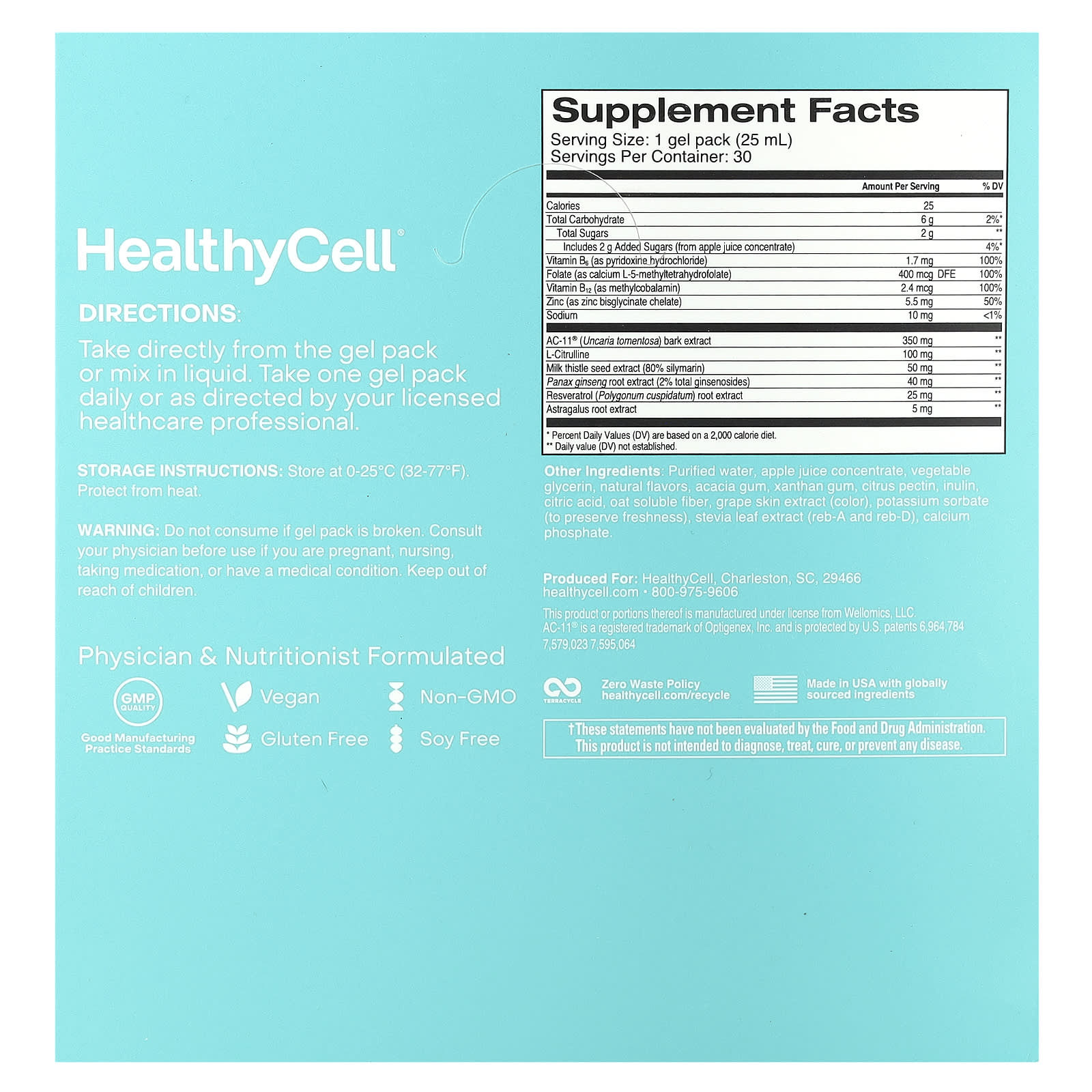 HealthyCell Comprimento de Telómero Uva 30 Embalagens de Gel 25 ml (084 fl oz) Cada – HealthyCell Suplementos Vitamins.