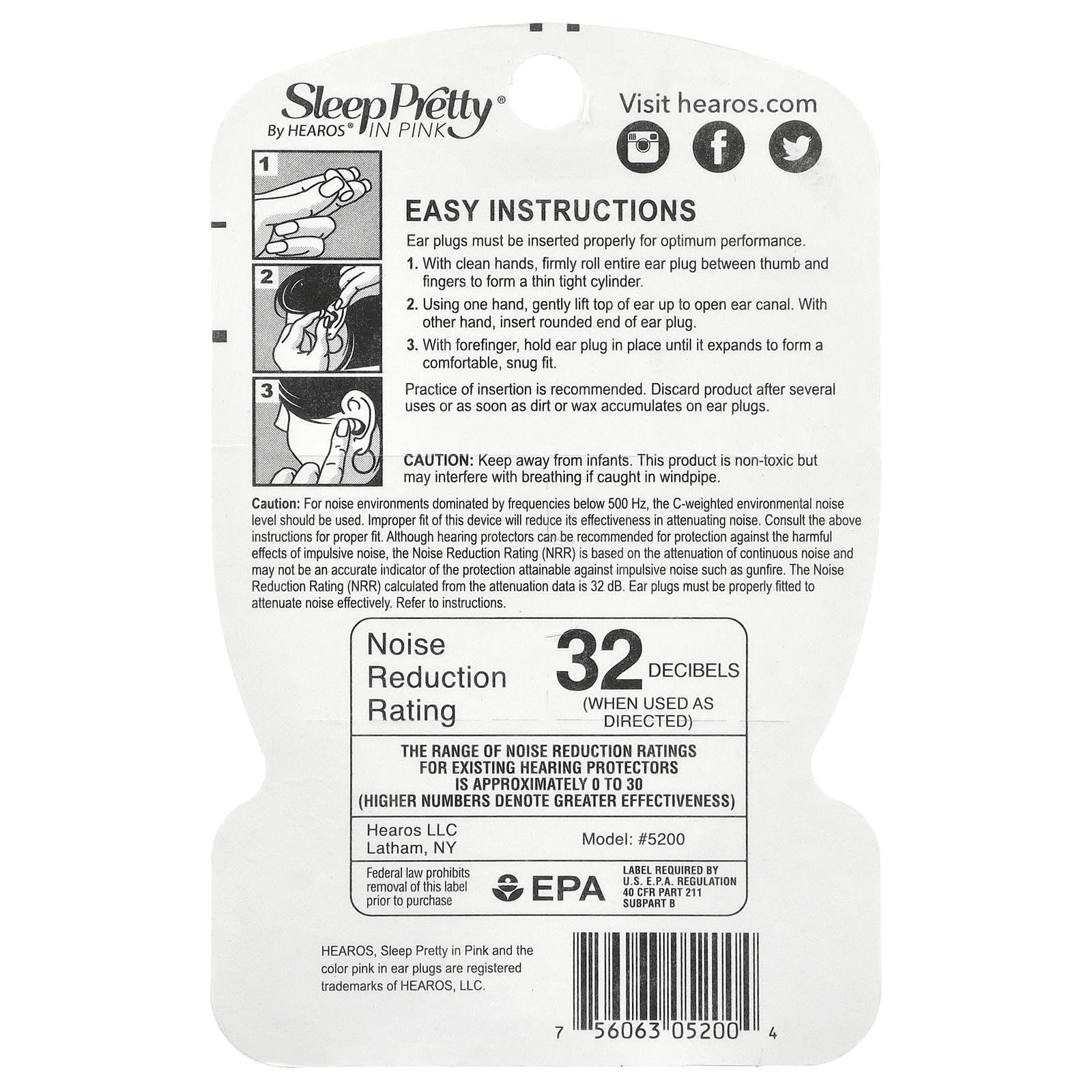 Hearos Tamponadores Auriculares Sleep Pretty® Rosa NRR 32 14 Par – Hearos Cuidados Pessoais Armário do Banheiro Cuidados com os Ouvidos e Protetores Auriculares.