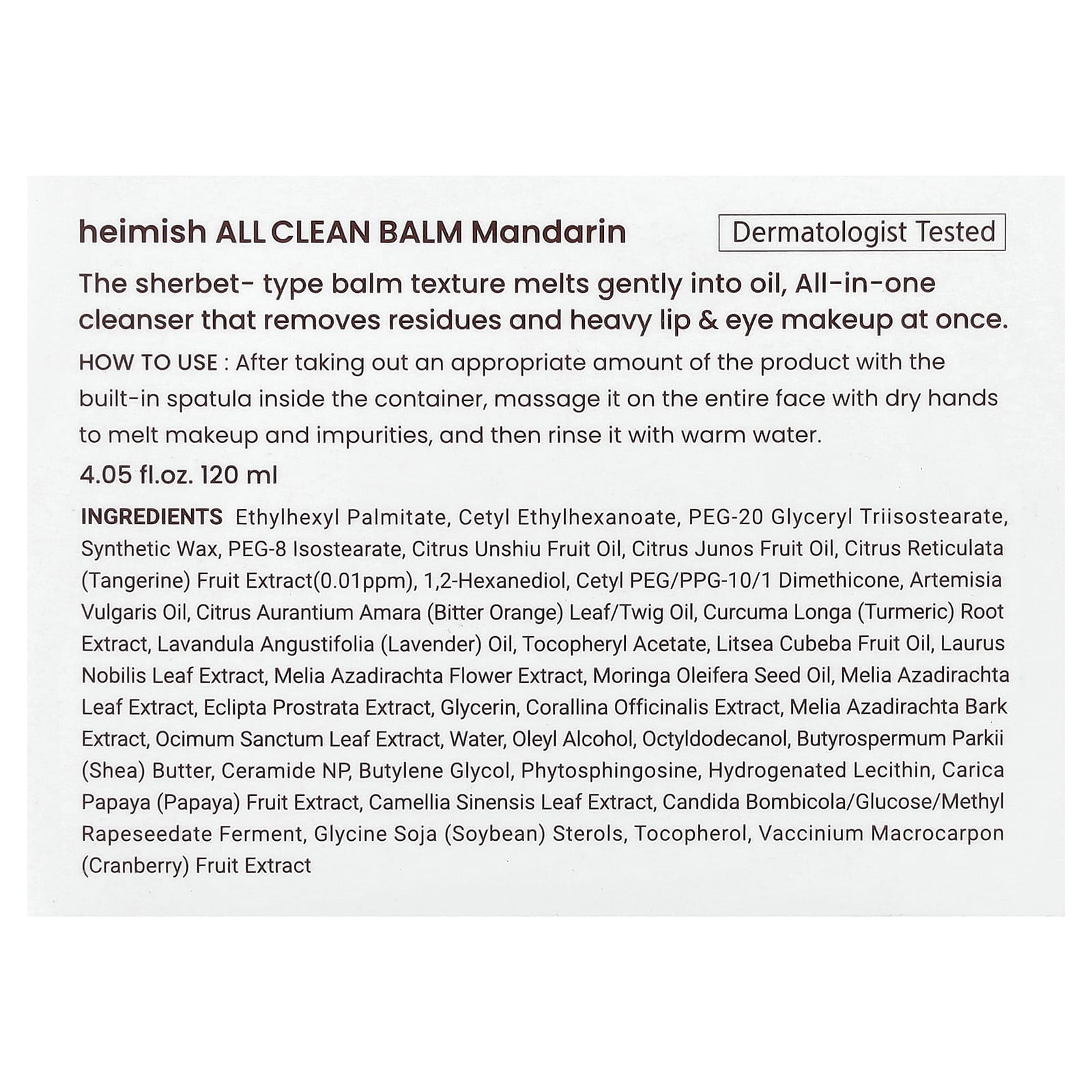 Heimish Bálsamo All Clean Mandarina 120 ml (405 fl oz) – Heimish Beleza Limpeza Facial Sabonetes Faciais Limpeza facial K-Beauty.