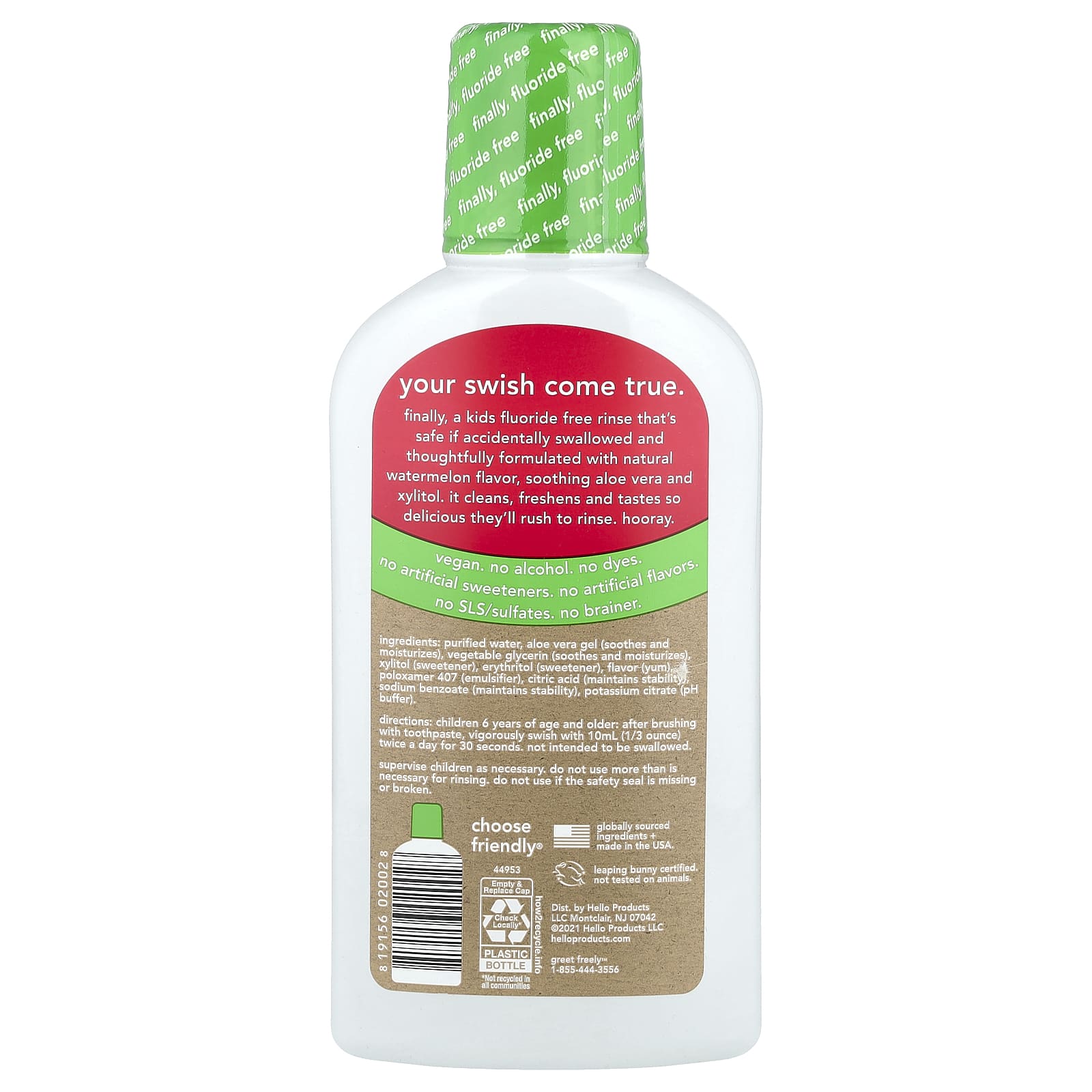 Hello Enxágue Infantil Sem Flúor + Sem Álcool Sabor Melancia orgânica 16 fl oz (473 ml) – Hello Bebês e Crianças Higiene Bucal Enxaguantes Bucais para Crianças Cuidados Pessoais Enxaguante e spray bucal.