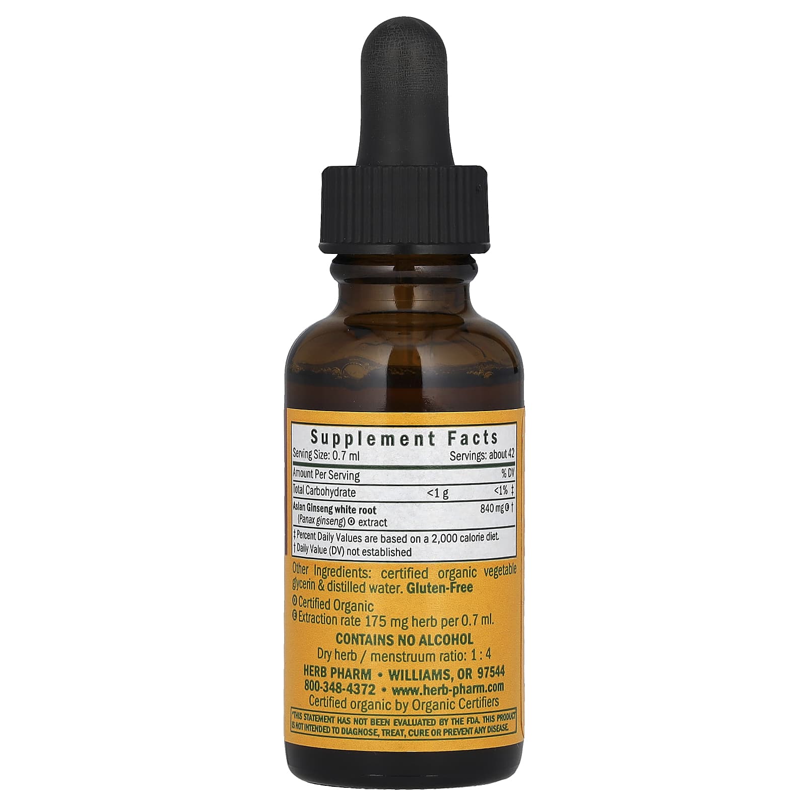 Herb Pharm Ginseng Asiático Sem Álcool 30 ml (1 fl oz) – Herb Pharm Suplementos Ervas Ginseng Ginseng Asiático.