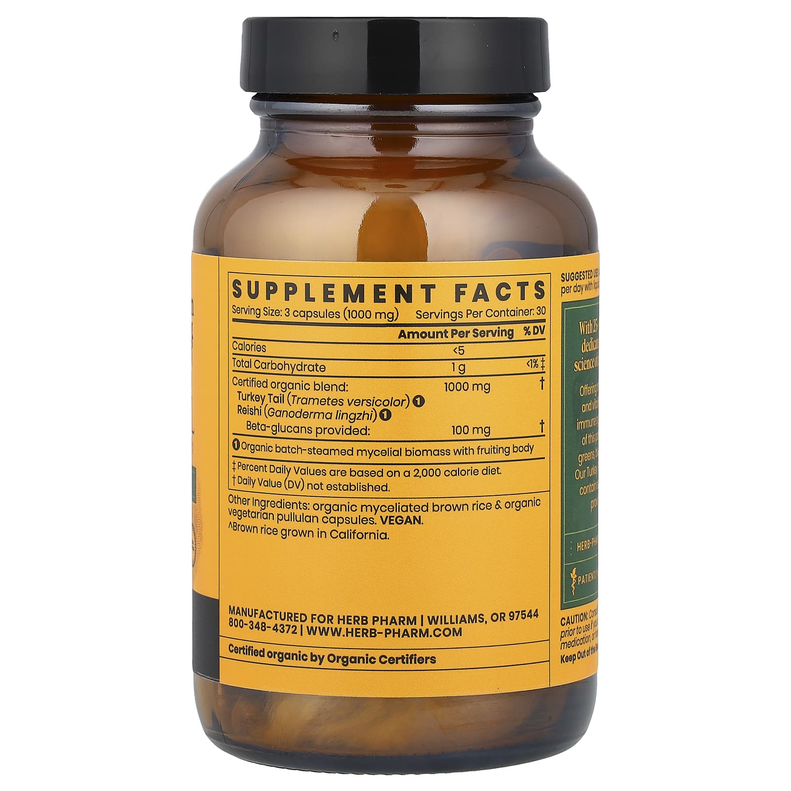 Herb Pharm Mushroom Wellness™ Mistura Cauda-de-Peru com Reishi 90 Cápsulas Vegetarianas – Herb Pharm Suplementos Cogumelos Rabo-de-peru.