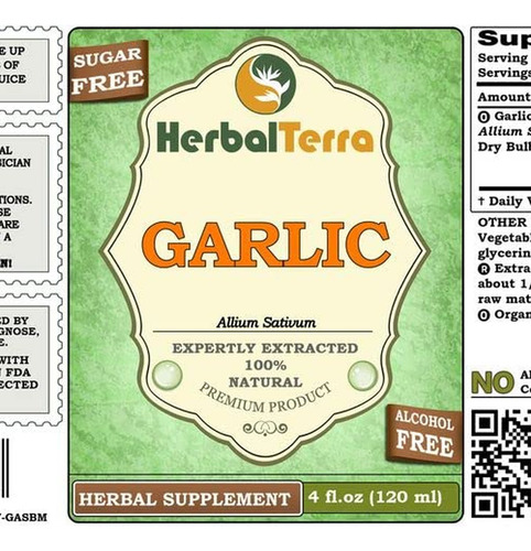 Extrato líquido de glicerina de alho seco orgânico sem álcool (Allium sativum) (marca: HerbalTerra,