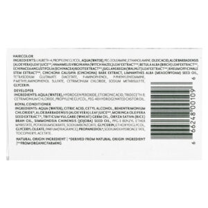 Ingredientes do Desenvolvedor: Aqua (água), peróxido de hidrogênio, ácido etidrônico, trideceth-9, cetrimonium chloride, propilenoglicol, óleo de rícino hidrogenado peg-40.