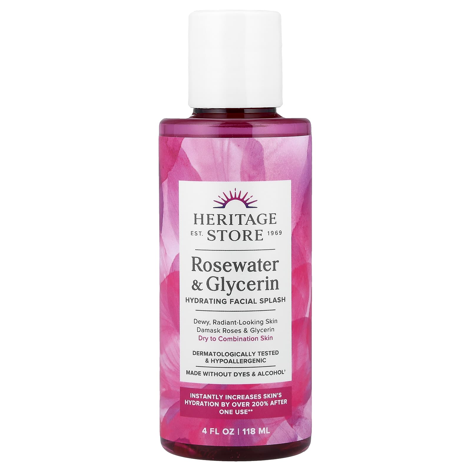 Heritage Store Splash Facial Hidratante Pele Seca a Mista Água de Rosas e Glicerina 118 ml (4 fl oz) – Heritage Store Beleza Limpeza Facial Sabonetes Faciais.