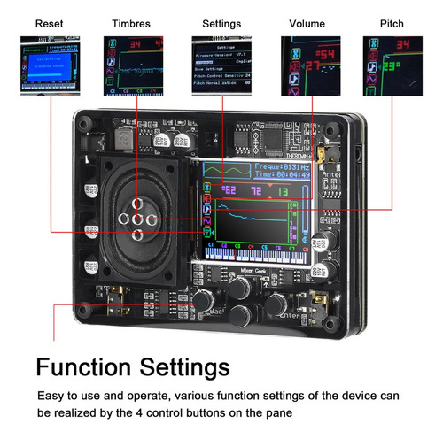 [Configurações de função]: Fácil de usar e operar, várias configurações de função do dispositivo podem ser realizadas pelos 4 botões de controle no painel. As informações de configuração do dispositivo, como volumes, tons, timbres, etc. serão perdidas após a reinicialização. Se você quiser manter as configurações, salve-as na interface de configurações.