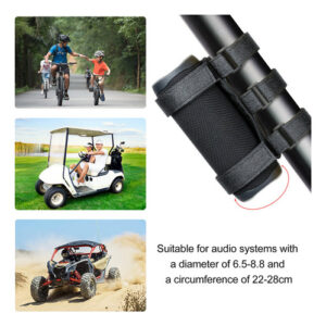 Conveniente e fácil de usar: as tiras adesivas podem proteger facilmente o equipamento de áudio da bicicleta sem a necessidade de ferramentas ou outros dispositivos de fixação. Basta enrolar as alças ao redor do dispositivo de áudio e do quadro da bicicleta e colá-las.