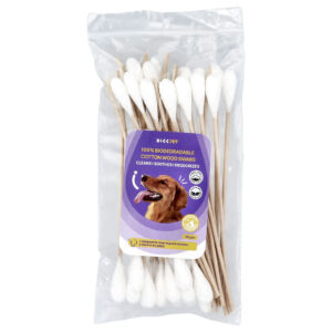 Cotonetes de madeira de algodão 100% biodegradáveis.