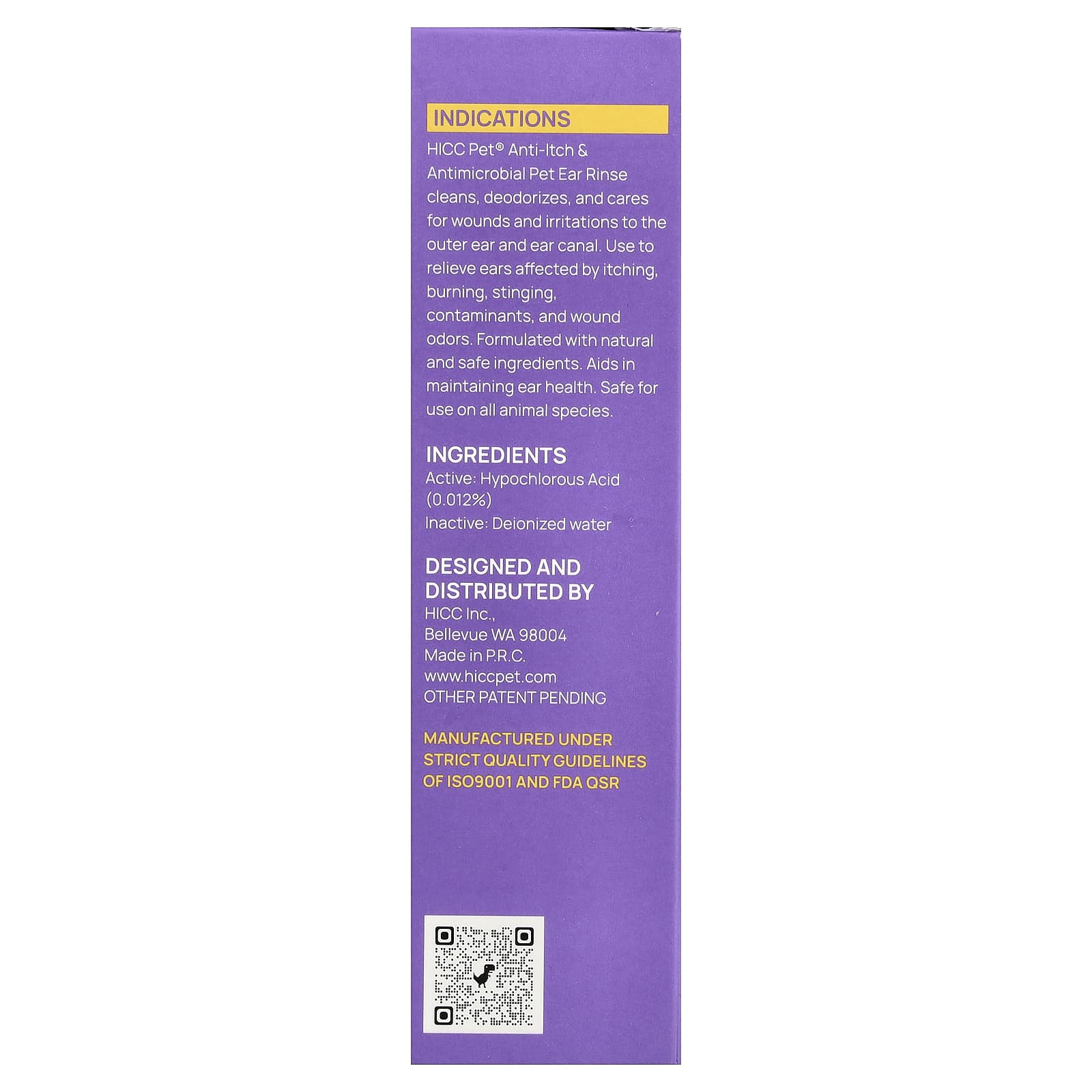Indicações — O Enxaguante para Ouvidos para Animais de Estimação Anticoceira e Antimicrobiano HICC Pet® limpa, desodoriza e cuida de feridas e irritações no ouvido externo e no canal auditivo. Use para aliviar os olhos afetados por coceira, queimação, ardência, contaminantes e odores de feridas. Formulado com ingredientes naturais e seguros. Auxilia na manutenção da saúde do ouvido. Seguro para uso em todas as espécies animais.