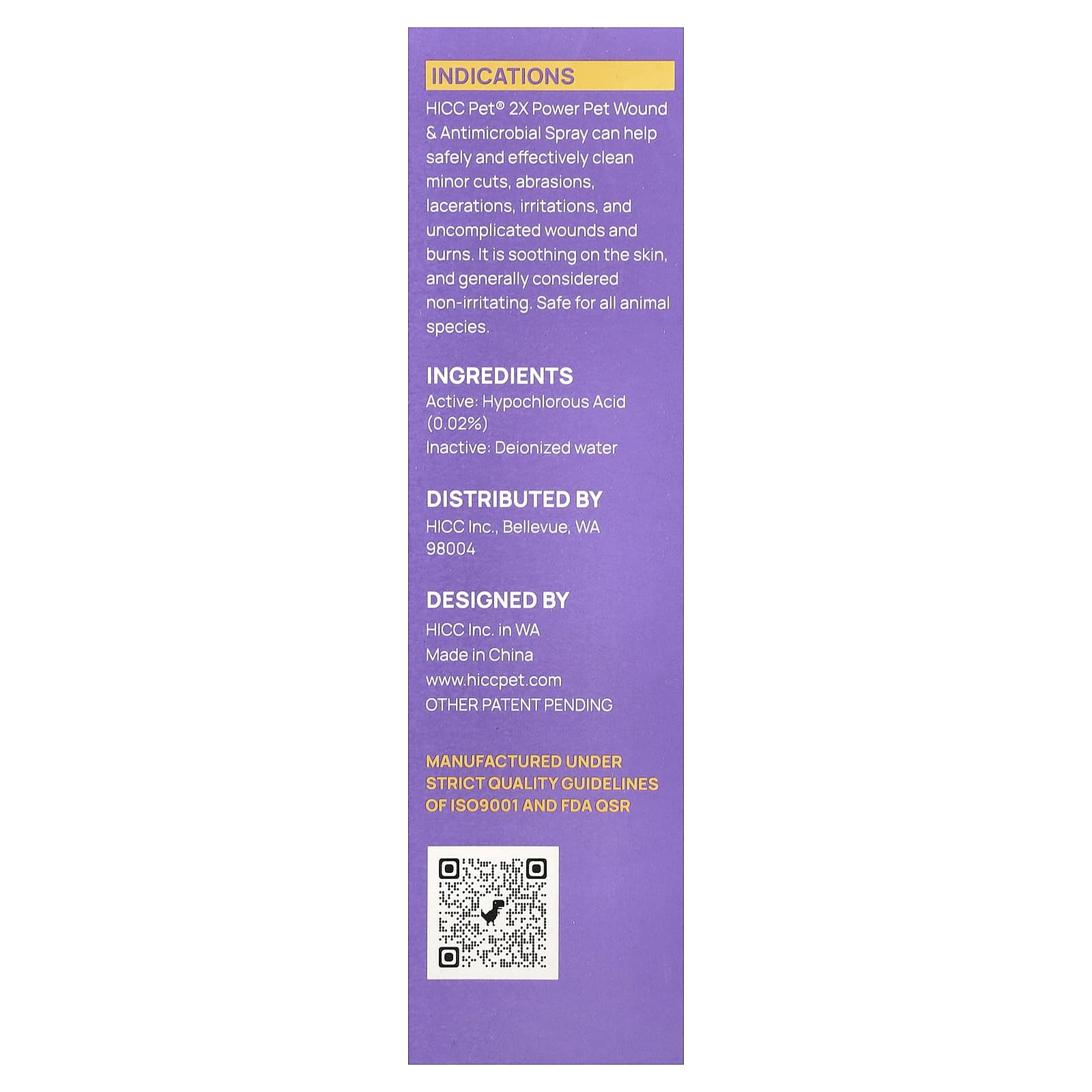 O Spray Antimicrobiano e para Ferimentos de Animais de Estimação 2X Power da HICC Pet® pode ajudar a limpar pequenos cortes, abrasões, machucados, irritações e feridas e queimaduras sem complicações, com segurança e eficácia. É um produto calmante para a pele e geralmente considerado não irritante. Seguro para todas as espécies animais.