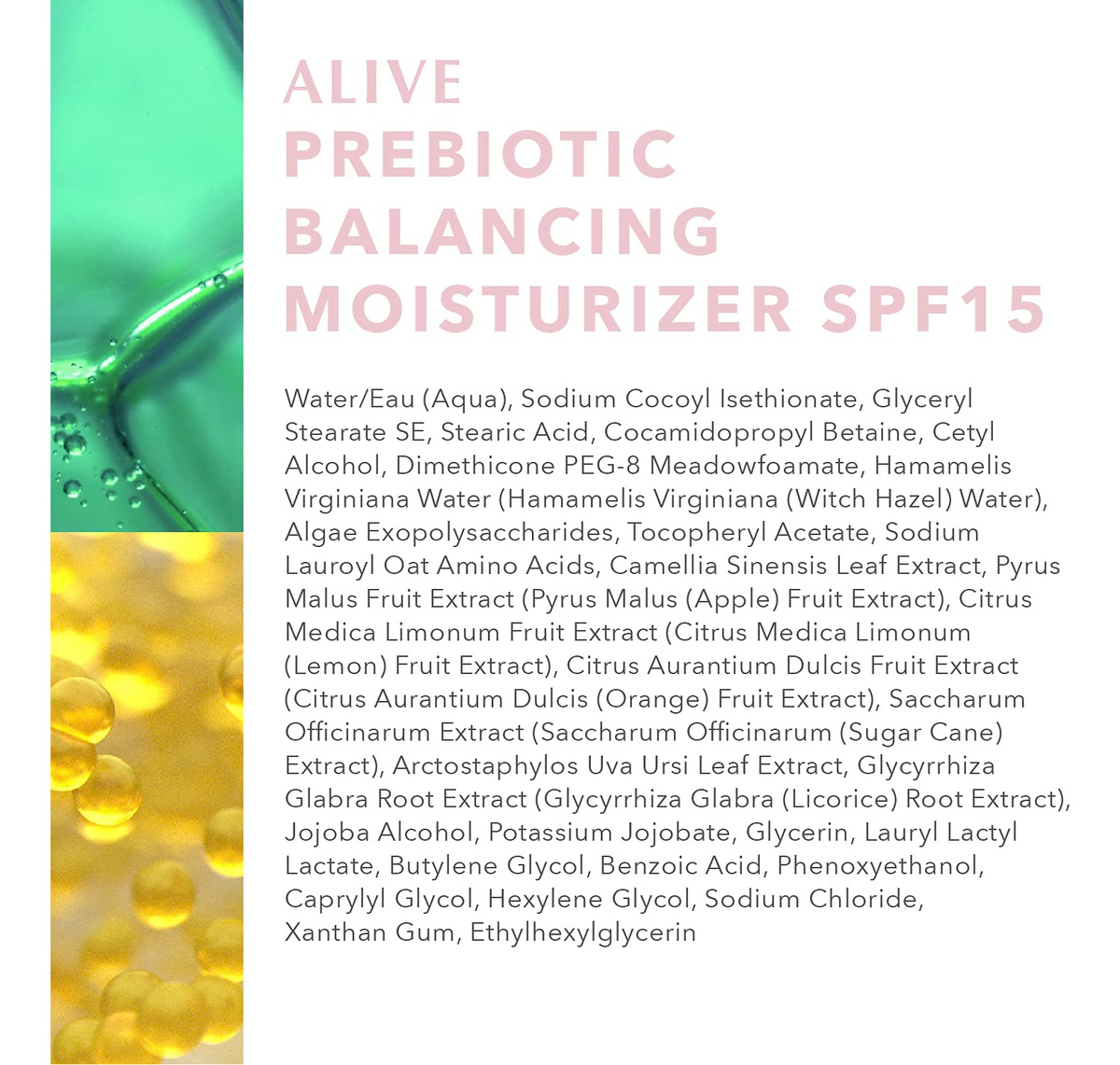 Hidratante prebiótico leve com SPF 15 Este hidratante leve deixa a pele viva e imediatamente hidratada, equilibrada e brilhante, com uma tez mais lisa e uniforme. A pele é protegida do sol com SPF 15 totalmente mineral. Formulado com um prebiótico de algas, combinado com nosso ácido algurônico patenteado, para combater preocupações que podem resultar do desequilíbrio do microbioma da superfície da pele. Os prebióticos são bons para você, ingredientes que ajudam a equilibrar o ecossistema natural da superfície da pele.* 92% das mulheres disseram que este produto ajuda a hidratar a pele após 1 dia. 92% das mulheres sentiram a pele hidratada após 1 dia. 88% das mulheres sentiram a pele nutrida após 10 dias. 85% das mulheres sentiram que sua pele ficou mais saudável após 10 dias. **Resultados do estudo com consumidores: Resultados obtidos após a autoavaliação de 86 mulheres, usando o produto uma vez ao dia. Os resultados individuais podem variar. – Hidratante leve com FPS 15 – Deixa a pele viva e imediatamente hidratada, equilibrada e brilhante. A pele é protegida do sol com um FPS 15 totalmente mineral. – Prebióticos – Ajudam a equilibrar o ecossistema natural da superfície da pele e a revitalizar a aparência da pele. Nosso prebiótico é obtido de forma natural e sustentável de microalgas. – Ingrediente inovador antienvelhecimento patenteado – Ácido algurônico exclusivo de origem natural de algas está incluído para minimizar visivelmente a aparência de rugas e aumentar os benefícios de outros ingredientes ativos.