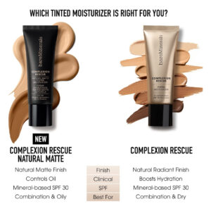 Hidratante colorido bareMinerals Complexion Rescue para rosto com FPS 30 + de ácido hialurônico, protetor solar mineral hidratante colorido para rosto, tonalidade de pele, vegano – A embalagem pode variar. Multitarefa 3 em 1 Este hidratante colorido limpo e vegano que melhora a pele atua como hidratante, tonalidade da pele e SPF 30 em um. – Comprovado que aumenta a hidratação – Aumenta a hidratação da pele em 215% com hialurologia Ácido Nico. Com base nos resultados médios de um estudo clínico independente realizado nos EUA com 62 pessoas. – Brilho de aparência saudável – Nivela visivelmente o tom da pele e desfoca as imperfeições, passando de uma cobertura pura a leve com um brilho úmido e saudável. – Fórmula limpa e sem óleo – Testada por dermatologistas, não comedogênica, hipoalergênica e formulada sem óleo. Este produto também é vegano e formulado sem glúten, fragrância sintética ou PEGs. – Ingredientes principais feitos com esqualano derivado da azeitona para saciar a pele com hidratação leve e refrescante durante todo o dia, além de ácido hialurônico comprovado para ajudar a repor e aumentar a umidade da pele.