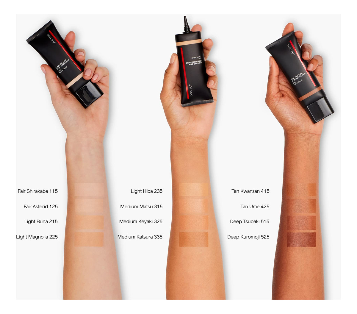 TONALIDADE AUTOREFRESCANTE SHISEIDO SMU SS 525 (DEEP KUROMOJI -525) — Tinta de pele para uso por 12 horas — Este hidratante colorido leve se sincroniza com a pele para fornecer cobertura de luz e equilibrar textura e tom, deixando sua pele natural brilhar. Ela se refresca automaticamente para um acabamento fresco e natural que dura o dia todo. – INGREDIENTES PRINCIPAIS – Esta fórmula híbrida contém 70% de ingredientes para a pele, incluindo ácido hialurônico para hidratação instantânea de 24 horas, além de condicionadores de pele e um sistema de liberação para uma sensação refrescante e aplicação perfeita. – TECNOLOGIA AVANÇADA DE CUIDADOS COM A PELE – A tecnologia ActiveForce protege seu acabamento perfeito dos efeitos do calor, umidade, óleo e movimentos faciais. A tecnologia sensorial responsiva se adapta à condição, tom e textura da pele para uma iluminação mais verdadeira. – COMO USAR – Aplique após os cuidados com a pele para uniformizar o tom da pele e criar um acabamento natural fresco na pele. Espalhe uniformemente do centro do rosto para fora. Crie o nível de cobertura desejado aplicando o produto na pele. – ESPECIALISTAS JAPONESES EM BELEZA – Enraizada em uma tradição de profundo respeito pela pele, cada fórmula da Shiseido aborda uma das seis etapas de uma rotina de J-Beauty: limpar, suavizar, fortalecer, tratar, hidratar e proteger.