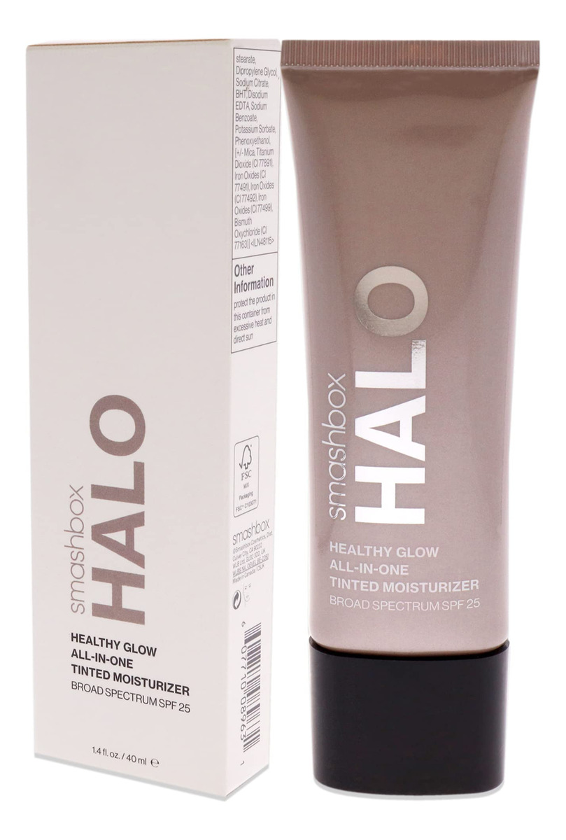 Hidratante colorido multifuncional SmashBox Halo Healthy Glow SPF 25 — Base feminina leve e neutra de 1,4 onças — Infundido com primer para uso confortável e durante todo o dia — Hidrata a pele por até 24 horas — Não remove a barreira de umidade da pele — Hidrata, condiciona e protege — Sem óleo, feito para todos os tipos de pele e não causa erupções cutâneas.