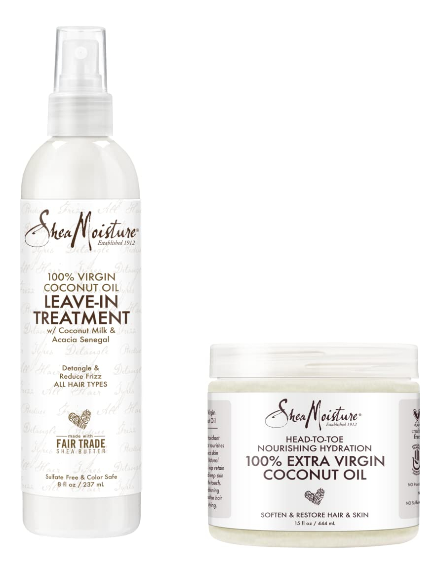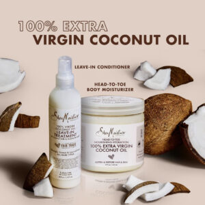 Hidratante e condicionador leave-in com óleo de coco 100% virgem da cabeça aos pés SheaMoisture para mimar a cabeça aos pés, hidratação nutritiva da pele e do cabelo sem sulfatos. 2 unidades – Hidratante corporal e tratamento leave-in com óleo de coco 100% virgem da cabeça aos pés é um regime de cuidados com a pele e o cabelo que fornece hidratação nutritiva da cabeça aos pés – Suavize e restaure o cabelo e a pele com este hidratante de óleo de coco zer da SheaMoisture. Um produto completo e multifuncional para cuidados com a pele e o cabelo que ajuda na retenção de umidade e suaviza a pele – o óleo de coco de absorção rápida pode ser usado sem deixar resíduos oleosos. O condicionador leave-in nutre para deixar os cabelos mais macios, enquanto o hidratante corporal suaviza a pele seca – use hidratante corporal 100% virgem da cabeça aos pés e condicionador leave-in para proteger o cabelo e a pele. O óleo de coco ajuda a revitalizar a pele e o cabelo com um brilho saudável — Todos os produtos para cabelo SheaMoisture, incluindo este hidratante e condicionador leave-in, são produzidos de forma sustentável e livres de crueldade