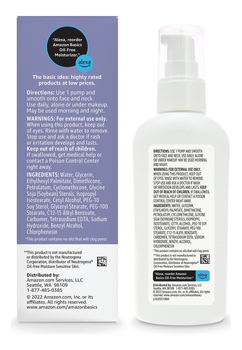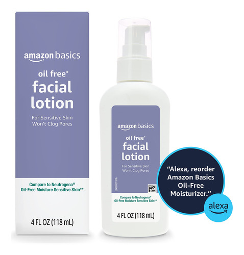 Hidratante facial sem óleo Amazon Basics para pele sensível, sem perfume, 4 onças fluidas (anteriormente Solimo) – Um frasco de hidratante facial de 4 onças fluidas para pele sensível – Hidrata a pele sem obstruir os poros. Pode ser usado de manhã e à noite – Sem álcool, sem parabenos – Se você gosta de hidratante facial sem óleo Neutrogena, convidamos você a experimentar o hidratante facial sem óleo Amazon Basics para peles sensíveis – Não testado em animais. Feito nos Brasil com componentes americanos e estrangeiros. – A embalagem pode variar das imagens mostradas