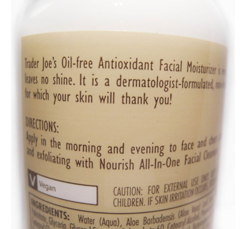 Hidratante facial antioxidante sem óleo Trader Joes Nourish, 177 ml de hidratante facial de
