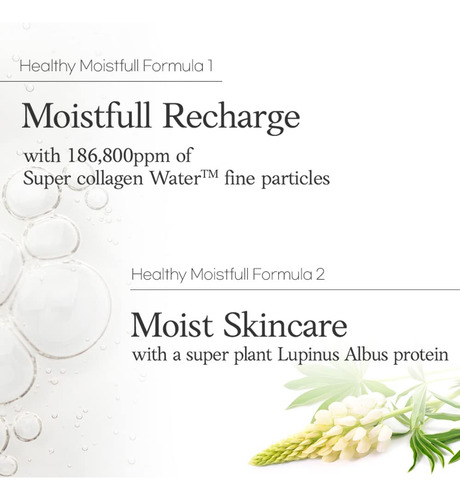 Recarga úmida com 186.800 ppm de supercolágeno Partículas finas de água: moléculas de colágeno do tamanho de partículas finas dissociadas pela hidrólise (também conhecida como colágeno hidrolisado) são absorvidas com mais eficiência para hidratar profundamente a pele. – Moléculas de colágeno do tamanho de partículas finas dissociadas pela hidrólise (também conhecida como colágeno hidrolisado) são absorvidas com mais eficiência para hidratar profundamente a pele. – Moléculas de colágeno do tamanho de partículas finas dissociadas pela hidrólise (também conhecida como colágeno hidrolisado)