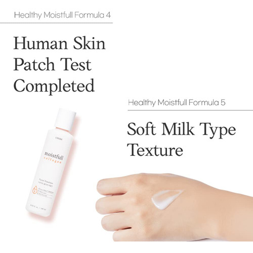 As pequenas partículas da água Super CollagentM (COLÁGENO HIDROLISADO) na emulsão úmida deixam a pele cheia de umidade firmadora e elástica. –