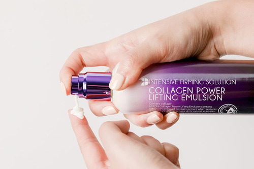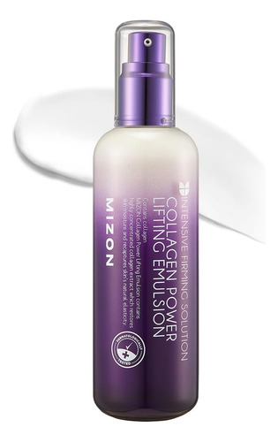 Emulsão lifting de colágeno MIZON, colágeno marinho com adenosina e peptídeos para o tratamento de linhas finas altamente elásticas, hidratante facial de hidratação profunda (120 ml, 4,06 onças fluidas), colágeno marinho: contém 54% de soluções de colágeno marinho. Os benefícios do colágeno marinho são que ele preenche as células flácidas da pele que carecem de colágeno natural e restauram a elasticidade da pele. O colágeno marinho é uma proteína de alto peso molecular que fornece umidade e nutrientes eficazes à pele.