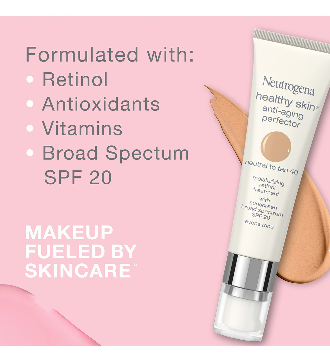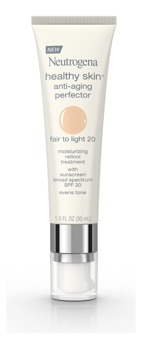 Hidratante facial colorido Neutrogena Healthy Skin Antiaging Skin Perfector e tratamento com retinol com protetor solar SPF 20 de amplo espectro com dióxido de titânio, 20 de claro a claro, tubo de 1 fl. oz – 1 onça fluida de Neutrogena Healthy Skin Anti-Aging Perfector Hidratante facial multifuncional com SPF 20 para ajudar a reduzir a aparência de linhas finas e rugas – Oferecendo uma cobertura transparente e misturável, o hidratante a tonalidade ajuda a uniformizar o tom da pele e suaviza a textura da pele – Formulado com retinol clinicamente comprovado, além de antioxidantes e vitaminas, ajuda a fazer a pele parecer com aparência mais jovem e saudável, com um acabamento natural úmido – Adequado para uso diário, o tom também contém dióxido de titânio e um protetor solar SPF 20 de amplo espectro para proteger a pele dos raios UVA/UVB prejudiciais do sol – Para usar, aplique o tratamento hidratante com retinol com os dedos ou uma esponja em todo o rosto como parte de sua rotina regular de cuidados com a pele e beleza para uma pele bonita e com aparência mais jovem