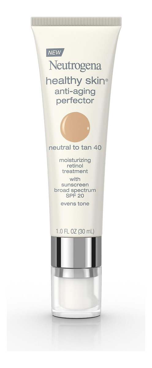 Hidratante facial colorido Neutrogena Healthy Skin Antiaging Skin Perfector e tratamento com retinol com protetor solar SPF 20 de amplo espectro com dióxido de titânio, 40 neutro a bronzeado, tubo de 1 fl. oz – 1 onça fluida de Neutrogena Healthy Skin Anti-Aging Perfector Hidratante facial colorido tudo-em-um com SPF 20 para ajudar a reduzir a aparência de linhas finas e rugas – Oferecendo uma cobertura transparente e misturável, o hidratante a tonalidade ajuda a uniformizar o tom da pele e suaviza a textura da pele – Formulado com retinol clinicamente comprovado, além de antioxidantes e vitaminas, ajuda a fazer a pele parecer com aparência mais jovem e saudável, com um acabamento natural úmido – Adequado para uso diário, o tom também contém dióxido de titânio e um protetor solar SPF 20 de amplo espectro para proteger a pele dos raios UVA/UVB prejudiciais do sol – Para usar, aplique o tratamento hidratante com retinol com os dedos ou uma esponja em todo o rosto como parte de sua rotina regular de cuidados com a pele e beleza para uma pele bonita e com aparência mais jovem