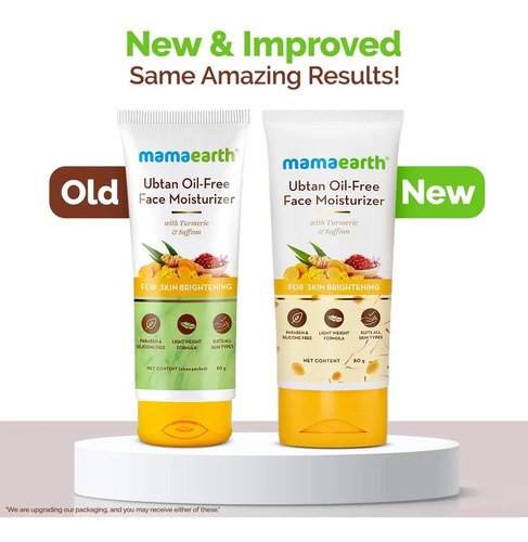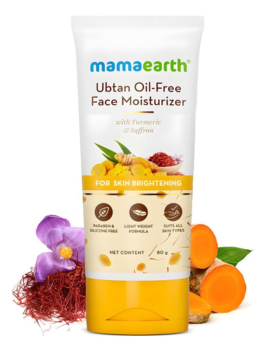 MAMAEARTH Ubtan Hidratante facial sem óleo com açafrão e açafrão Hidratação leve para pele radiante Fórmula não oleosa 80 ml (2,71 fl oz)