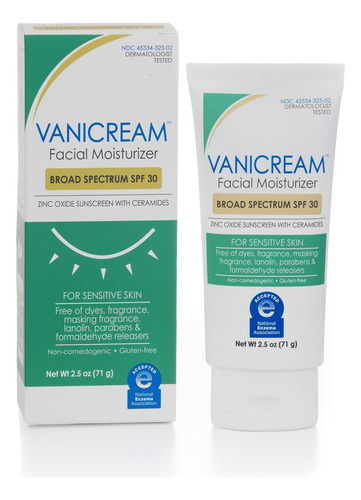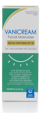 Hidratante facial Vanicream com FPS 30 – Protetor solar mineral – 75 ml – Formulado sem irritantes comuns para peles sensíveis O