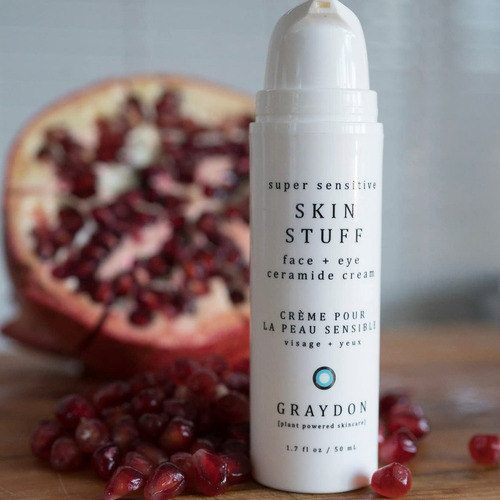 Creme hidratante Graydon Skincare Skin Stuff com ceramidas para rosto e olhos. Hidrata e suaviza intensamente a pele propensa a acne. Com óleo de rosa mosqueta e bordo. Limpador facial hidratante de 50 ml.