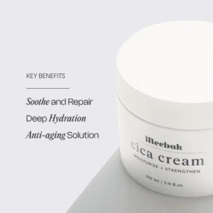Meebak é a marca em que os rituais de beleza asiáticos se encontram com a tecnologia K-beauty. Combinamos remédios fitoterápicos tradicionais com a ciência moderna para criar produtos feitos exclusivamente para peles sensíveis. – [Solução tudo-em-um para pele jovem e saudável] O creme Meebak Cica combina o poder antienvelhecimento, calmante e reparador em um único produto. Infundido com Retinol, Peptídeos e Centella Asiatica (Cica), este hidratante facial foi desenvolvido para fortalecer a barreira da pele enquanto acalma a pele sensível, perfeito para simplificar sua rotina de cuidados com a pele. Agora 3 vezes maior em tamanho, oferecendo mais da fórmula mais vendida que você adora! – [Cica coreana para acalmar e reparar] Desenvolvido pela Centella Asiatica coreana, conhecida como Cica, este creme é essencial para peles sensíveis. Ele acalma instantaneamente a irritação, repara a pele danificada e ajuda a fortalecer as defesas naturais da pele, tornando-o ideal para uso como creme noturno ou hidratante diurno para peles sensíveis. – [Hidratação e antienvelhecimento em um creme] O creme Meebak Cica é formulado com ingredientes que adoram a pele, como ácido hialurônico e ceramidas, que hidratam profundamente, enquanto o retinol e os peptídeos reduzem as linhas finas e as rugas. Isso o torna a escolha perfeita para quem procura acalmar e nutrir a pele enquanto combate os sinais de envelhecimento. – [Textura sedosa para uso diurno e noturno] A textura leve e luxuosa deste creme facial é absorvida rapidamente, retendo a umidade e aprimorando os efeitos de seus outros produtos para a pele. Seja usado durante o dia ou como um creme intensivo durante a noite, deixa a pele macia, suave e hidratada. – [Fórmula perfeitamente equilibrada para peles sensíveis] Com uma proporção áurea de cica, pantenol e ceramidas, este creme facial oferece ótimos benefícios para peles sensíveis. É formulado para ser suave, mas eficaz, proporcionando benefícios calmantes, reafirmantes e fortalecedores em uma única etapa para todos os tipos de pele.