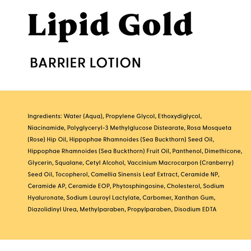 Lipid Gold é um hidratante leve, mas poderoso, que hidrata, fortalece e acalma a pele. É formulado com ceramidas, colesterol e ácidos graxos para imitar e fortalecer sua barreira de umidade natural para uma pele saudável e elástica. É vegano, livre de crueldade e livre de fragrâncias, álcool e óleos essenciais. A Stratia desenvolve e fabrica todos os produtos internamente em Los Angeles, CA.