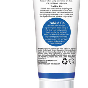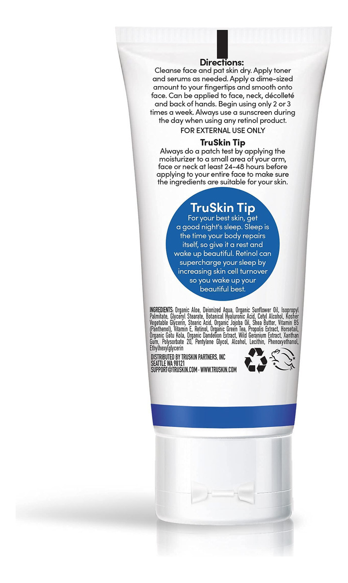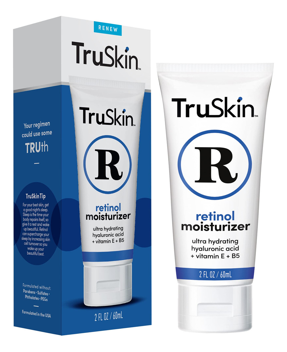 TruSkin Naturals, creme facial com 2,5% de retinol, antienvelhecimento, 2 fl oz — PELE MACIA E HIDRATADA: o hidratante antienvelhecimento com retinol funciona para melhorar a aparência de linhas finas, rugas, tom de pele, textura e hiperpigmentação; hidratante facial com infusão botânica para ajudar a hidratar e promover uma aparência mais jovem sem preenchimentos desnecessários. – NOSSA MISTURA PROPOSITAL: creme facial feito com Retinol (vitamina A) para estimular a renovação da pele e apoiar a produção de colágeno; creme anti-rugas para rosto combinado com ácido hialurônico, vitamina B5, chá verde, aloe vera, Óleo de girassol, óleo de jojoba, manteiga de karité e vitamina E. – COMO USAR: Depois de limpar e aplicar o tônico ou sérum, aplique creme hidratante facial na ponta dos dedos e espalhe no rosto; teste produtos para cuidados com a pele facial 24 horas antes do uso; somente para uso externo. Aplique SPF diariamente. – A DIFERENÇA DE TRUSKIN: Se por algum motivo você decidir que este creme facial com retinol não é adequado para sua pele, estamos aqui para ajudá-lo. Cada mistura propositadamente equilibrada dos principais antioxidantes, supernutrientes e ativos botânicos nutritivos aumenta a eficácia e oferece benefícios para a pele, sem aditivos desnecessários ou fragrâncias adicionadas. A data de validade está impressa no adesivo de código de barras anexado à embalagem. – LIVRE DE CRUELDADE E FABRICADO NOS EUA COM COMPONENTES DE ORIGEM GLOBAL: O TruSkin é certificado pela Leaping Bunny como livre de crueldade e todos os nossos produtos são fabricados e engarrafados nos EUA com componentes de origem global para um frescor excepcional. Dermatologista e clinicamente testado.
