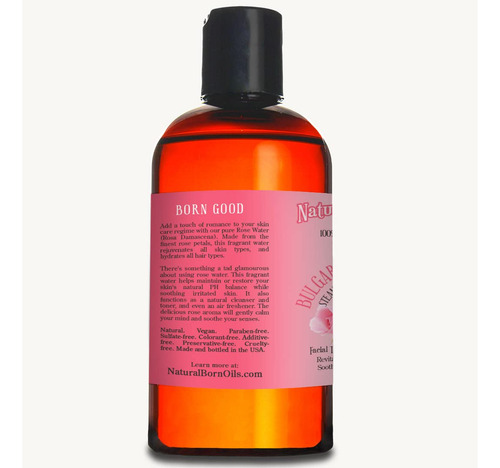 Água de rosas 100% pura Nome botânico: Rosa Damascena, tônico facial orgânico não diluído e hidratante para pele e cabelo. Adicione um toque de romance ao seu regime de cuidados com a pele com Água de Rosas. Feita com as melhores pétalas de rosa perfumadas da Europa, essa água perfumada rejuvenesce todos os tipos de pele e hidrata todos os tipos de cabelo. Há algo um pouco glamoroso em usar água de rosas. Borrife no rosto pela manhã e logo antes de dormir para aproveitar seus benefícios. Essa água perfumada ajuda a manter ou restaurar o equilíbrio natural do PH da pele, ao mesmo tempo que acalma a pele irritada. Também funciona como limpador leve e tônico. Misture com óleo de jojoba ou amêndoa para obter um removedor de maquiagem que também hidrata. Orgânico. Natural. Vegano. Livre de aditivos. Sem parabenos. Isento de sulfato. Isento de corantes. Livre de crueldade. Sem conservantes. Engarrafado nos Brasil. The Process A água de rosas búlgara é feita diretamente das pétalas das perfumadas rosas europeias por meio de destilação a vapor. Os frascos de âmbar o protegem dos nocivos raios UV.