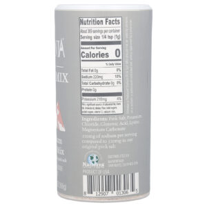 Esta alternativa de sódio reduzido pode conter minerais e oligoelementos naturais, como os encontrados no Sal Rosa do Himalaia original, alguns dos quais fornecem sua cor. Este sal é ideal para temperos caseiros que buscam reduzir o sódio sem comprometer o sabor e pode ser usado em qualquer receita.