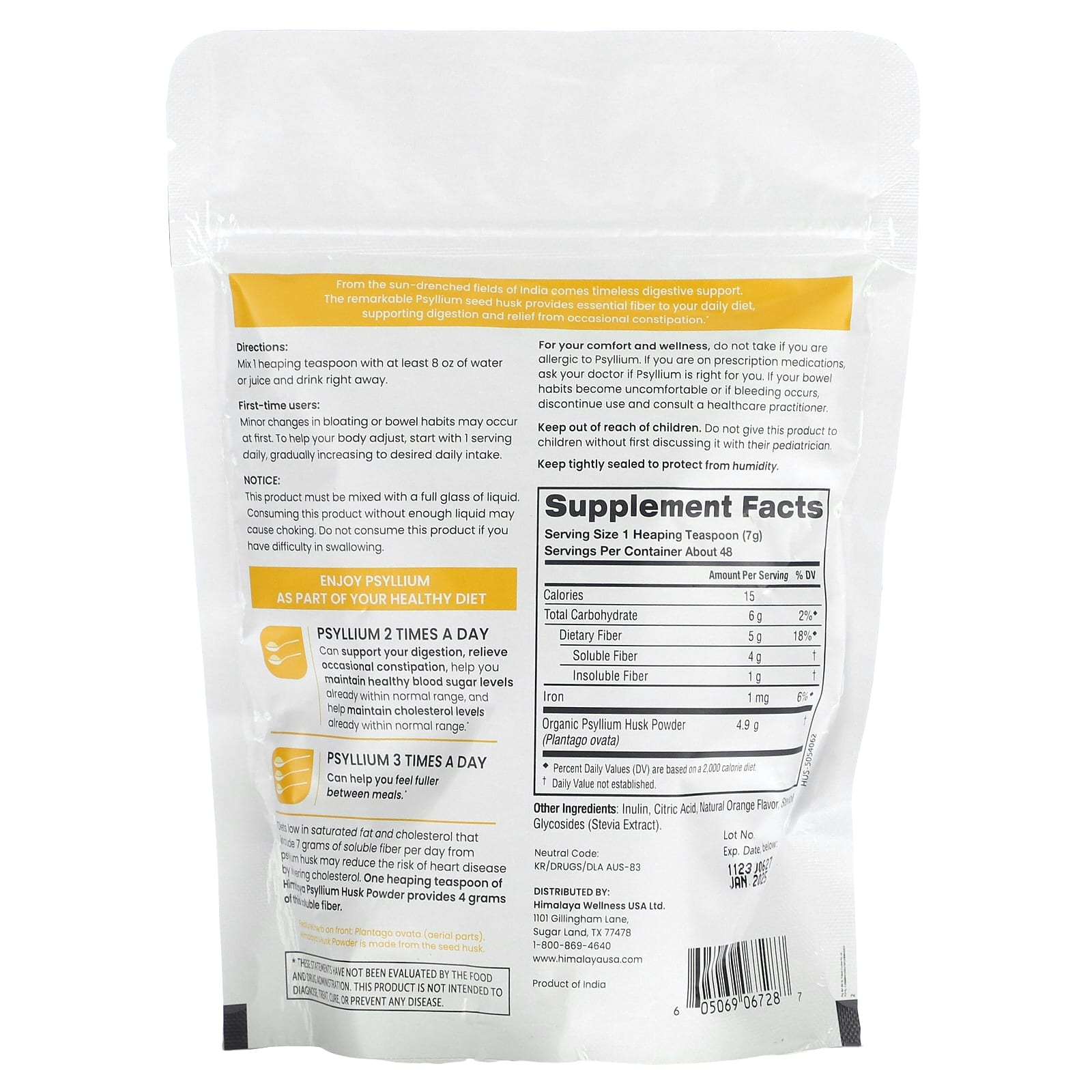 Himalaya Casca de Psílio em Pó Laranja 340 g (12 oz) – Himalaya Suplementos Saúde Intestinal Fibras Casca de Psyllium.