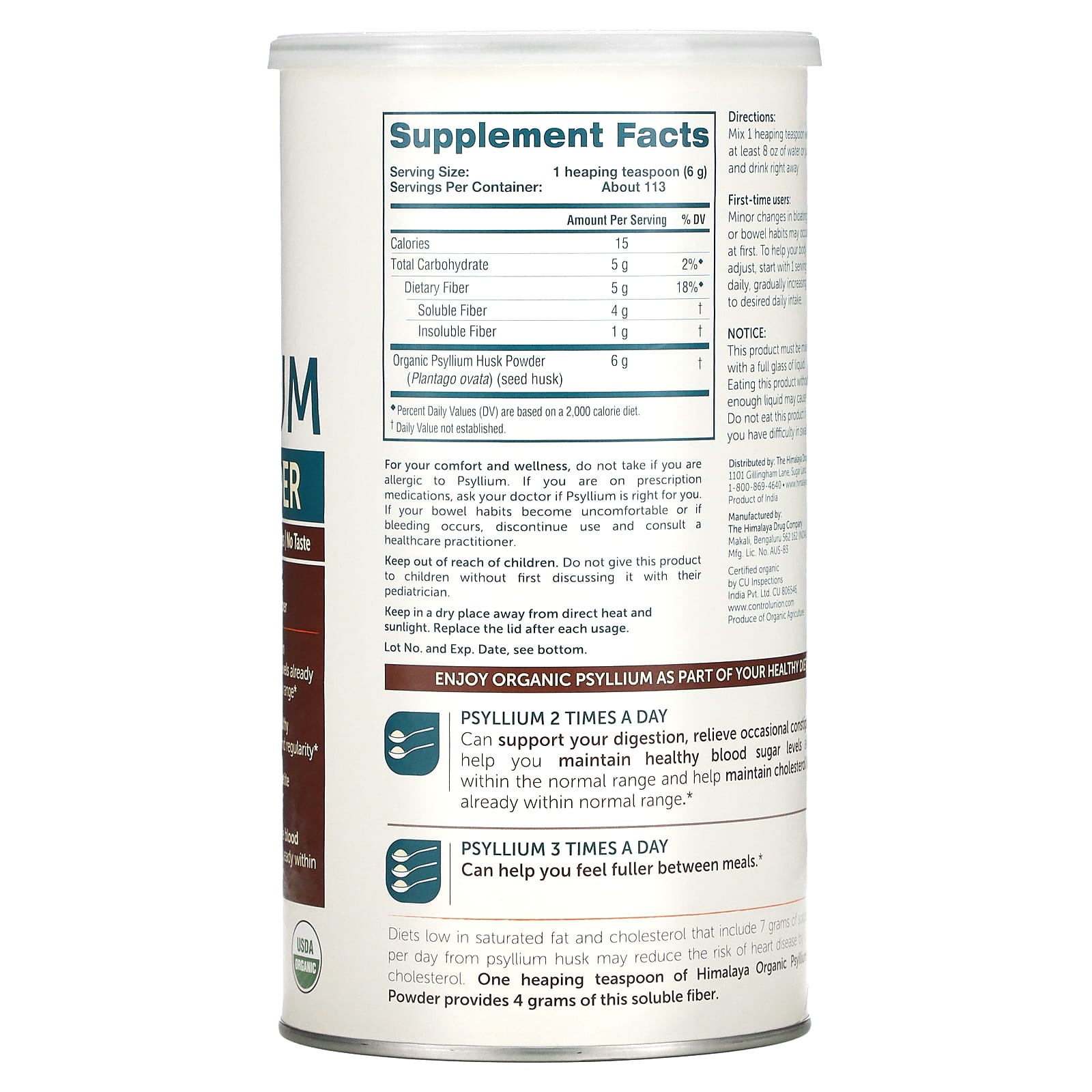 Dietas com baixo teor de gordura saturada e colesterol que incluem 7 gramas de fibra solúvel da casca de psyllium por dia podem reduzir o risco de doenças cardíacas, diminuindo o colesterol. Uma colher de chá cheia de Casca de Psyllium Orgânica do Himalaia fornece 4 gramas dessa fibra solúvel.