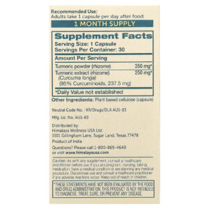 Himalaya Turmeric 95® com Curcumina 30 Cápsulas Vegetarianas – Himalaya Suplementos Antioxidantes Cúrcuma e Curcumina.