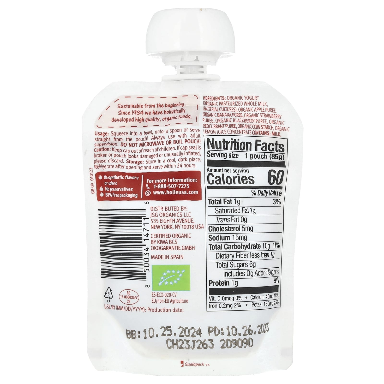 Holle Iogurte Orgânico com Maçã Banana e Frutos Silvestres Mais de 8 Meses 85 g (3 oz) – Holle Bebês e Crianças Alimentação Saquinhos, Purês e Refeições.
