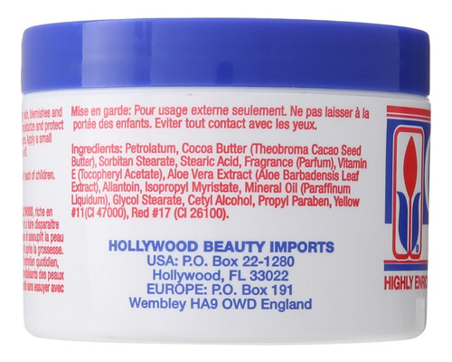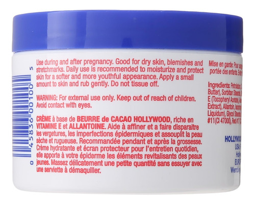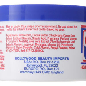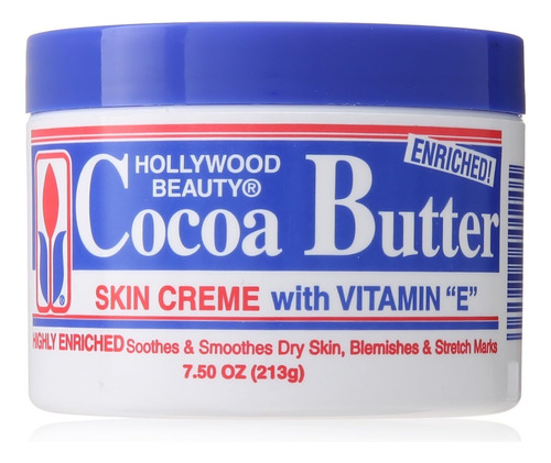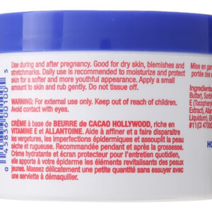 Hollywood Beauty Cocoa Butter Skin Creme é altamente enriquecido e acalma e suaviza a pele seca, manchas e estrias. O uso diário é recomendado para hidratar e proteger a pele para uma pele mais macia e jovem. Sua fórmula ultra-rica é infundida com Vitamina E para adicionar umidade hidratante, mas também para curar manchas e estrias, especialmente durante e após a gravidez.